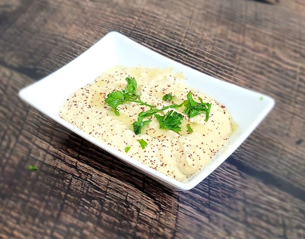 Garbanzo beans, olive oil, Tahitian sauce, garlic and topped with fresh chopped parsley.